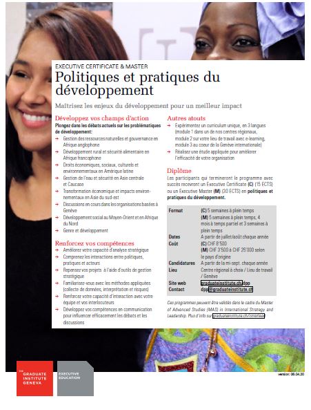 Confrontez-vous à des problématiques globales et régionales, et échangez votre expérience avec des pairs du monde entier Réalisez une étude (…)