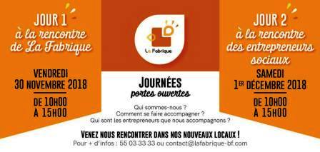 La Fabrique a le plaisir de vous convier à ses Journées Portes Ouvertes ce vendredi 30 novembre et samedi 1er décembre 2018, de 10 à 15h dans ses nouveaux locaux, à Wemtenga.