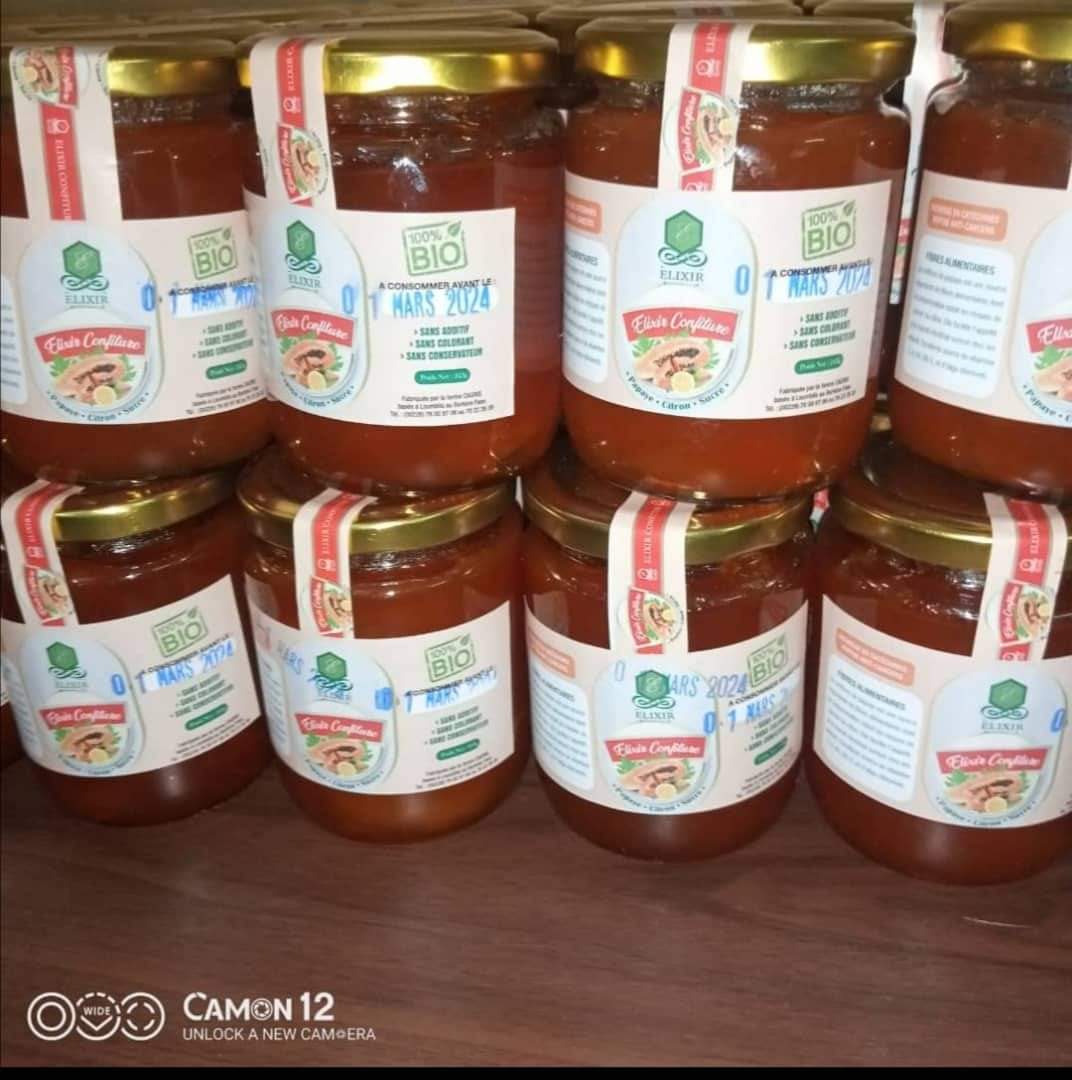 Vente promotionnelle de confiture de papaye bio, sans conservateur, sans produits chimiques et 100% burkinabé. Le pot à 750 au lieu de 1 000 francs jusqu’au 07 mai 2023.